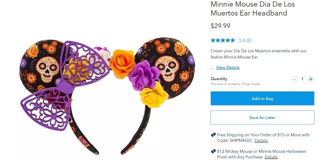 In August of 2019, Mouse Gear at EPCOT began to sell a variety of Dia de los Muertos merchandise such as Skull Ear Hats, Minnie Ears, and t-shirts. Fortunately for those not able to visit the parks directly, Dia de los Muertos merchandise can be purchased on the shopDisney website.