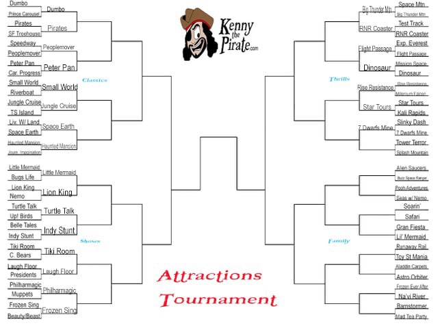 Here are the attractions we will be voting for during this tournament. You've got some tough choices ahead of you!