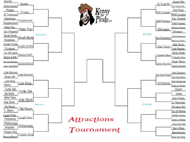 For an outline of attractions and to keep up with past winners, please see the bracket below. Some attractions fit in more than one category, so we selected the most appropriate category