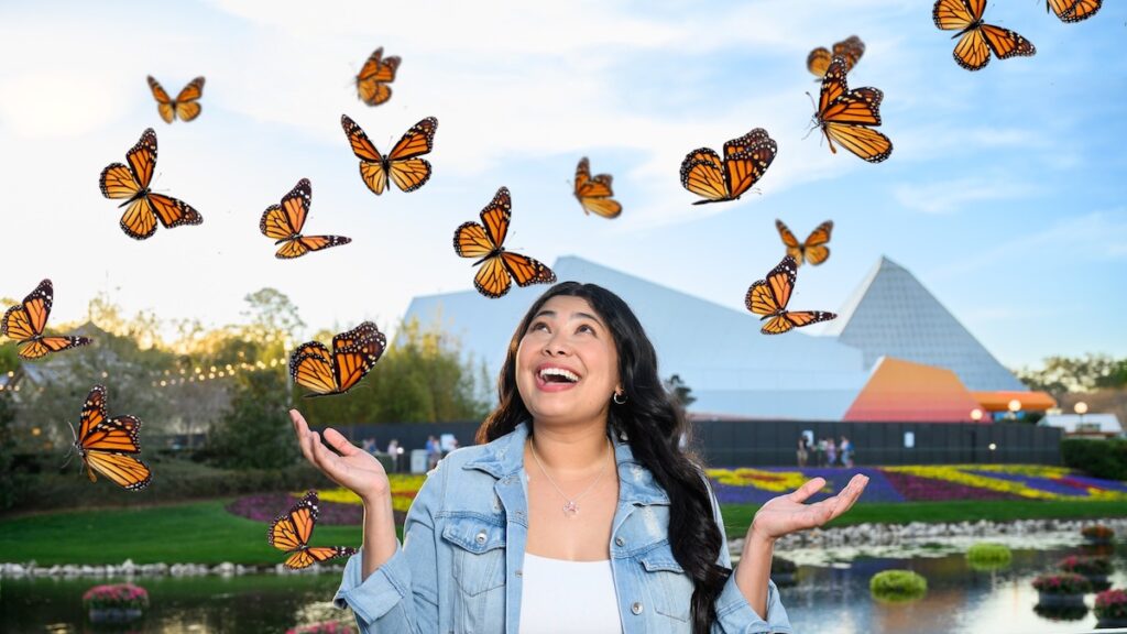 You can also find Spike the Bee shots. Or, if you prefer, you can encircle yourself with butterflies. Just ask the Disney PhotoPass photographer stationed near the entrance to World Showcase underneath the Monorail beam.
