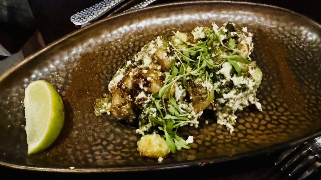 Our table had a round of Roasted Brussels Sprouts. There are prepared with cilantro sprouts, jalapeño mayo, cotija cheese, and ancho chili powder. They had too much a kick for me, but they were a hit with everyone else.