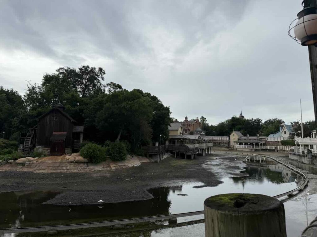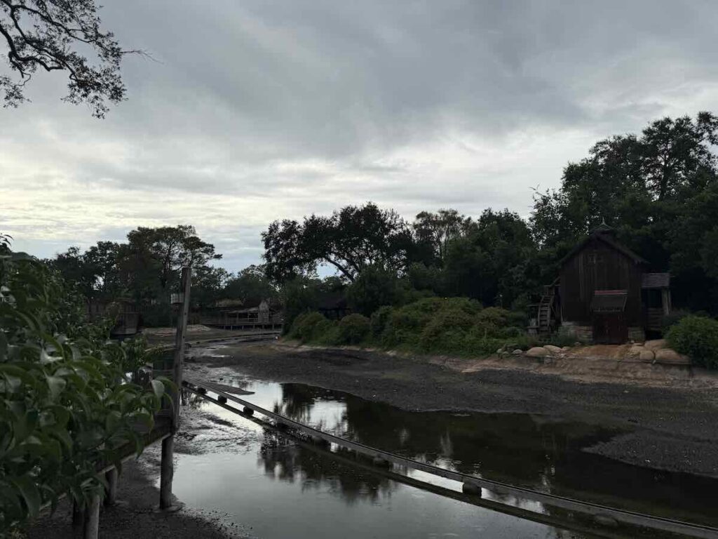 Earlier this month, we shared that Disney had begun draining the Rivers of America. On our most recent visit to Magic Kingdom, we ventured over to Frontierland. The Rivers of America is now drained with only puddles remaining.