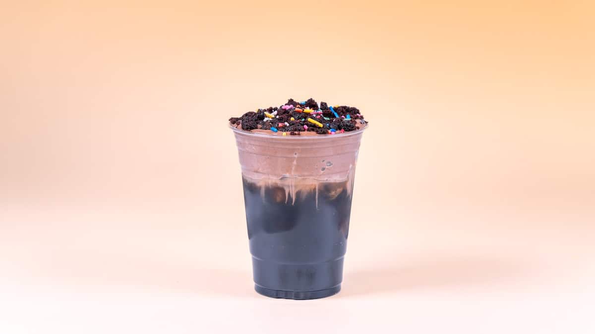 Or, for a literal round of keepy-uppy, enjoy Mud Cake Cold Brew! It is Joffrey's Coffee French Roast Cold Brew with a malted milk topper, fudge brownie bits, and sprinkles.